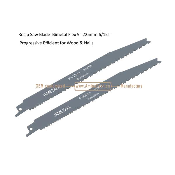 Recip Saw Blade Bimetal M42 8% cobalt Demolition for Cutting Wood & Nails Size:9" 225mm 6/12T Images |